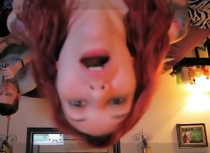 une demoiselle aux cheveux roux gargarise la bite et se fait baiser par derrière sur la webcam