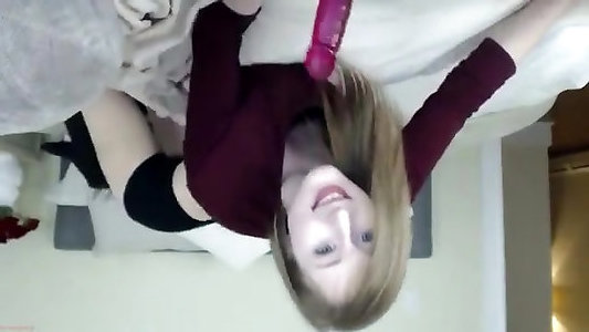 une petite amie aux cheveux blonds essaie dildo fellate sur webcam