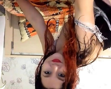 kinky redhead camgirl avec petits seins jouets ses lèvres à