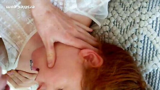 la rousse aux petits seins se fait enduire de foutre chaud