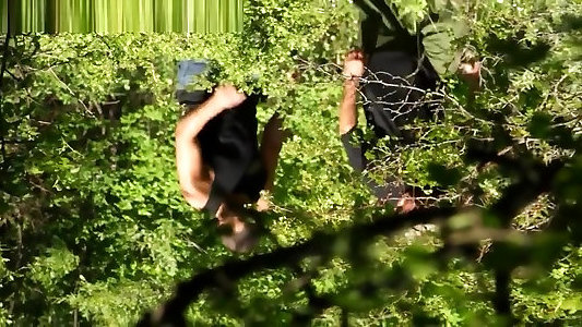 les garçons insatiables rampent ligotés et le nombre limité de putes brunes en plein air