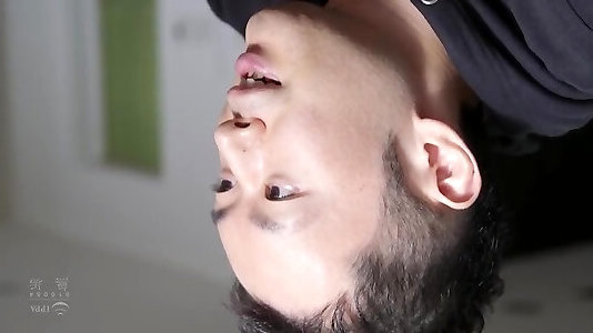 une demoiselle aux cheveux noirs très restreinte donne un bj ultra-mignon suspendu à lenvers