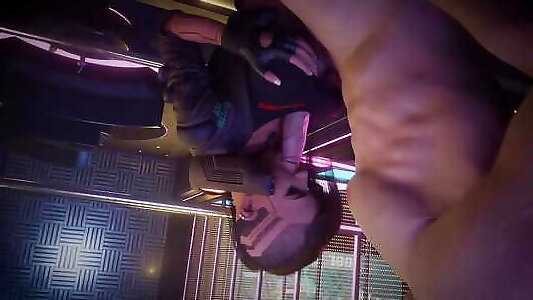 un cascadeur aux teintes foncées avec des nichons gonflables chevauche une bite dure changer de rôle cowgirl