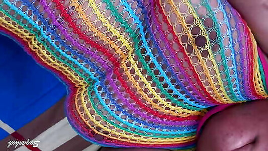 chevauchant un très gros jouet de sexe aux teintes foncées et obtenant un orgasme