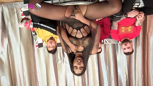 séduisante blondie newcummer est fouettée par deux perverses spandex-clad honies