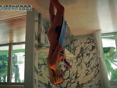 4k modèle à la nuance sombre babe poussé à sauter nu par lentraîneur