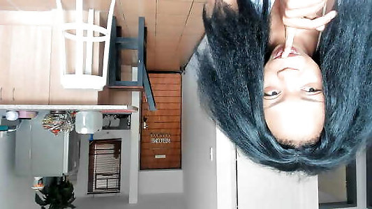 une ado aux teintes foncées se moque de son beau-père en sous-vêtements super chauds