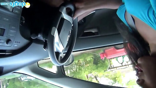 une fille super sexy à la peau foncée conduit un camion et montre ses goodies