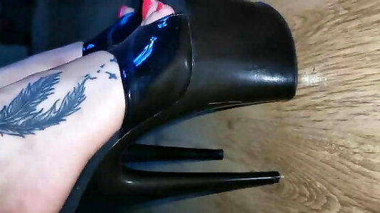 magnifique demoiselle me donne une branlette avec des chaussures et je jouis sur ses pieds