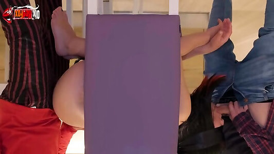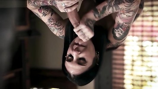 une brune sexy avec un tatouage se fait défoncer par son amie
