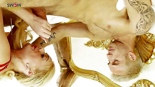 une superbe blonde platine avec de gros cupcakes laisse son mari lécher sa fente crue dans la chambre