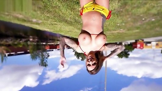 masturbation publique sur le capot en spandex de ma camionnette une adolescente sex-positive branle une chatte rasée humide