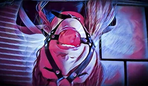 superbe cheveux roux se faisant pomper dans du latex débène lustré