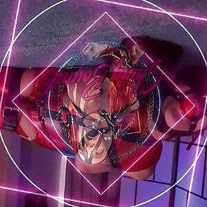 touchedfetish-clip complet - femme fétiche ligotée dans un bondage et une balle bâillonnée dans un catsuit en caoutchouc latex et des bottes à genoux-léchage de chatte