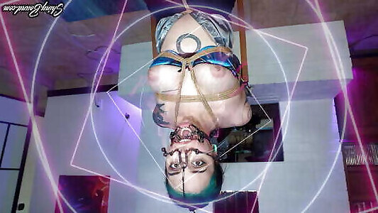 attachée et suspendue par ses chevilles
