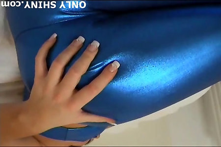 massage et éjaculation faciale pour le cul en leggings en cuir brillant de couleur foncée