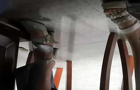 des blondes en nylon entraînent son esclave au pied et le traient dans une chaussure