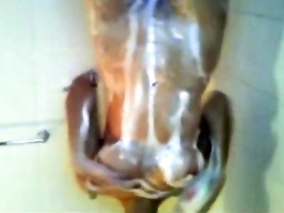 une femme noire tatouée se douchant et se masturbant sur une webcam