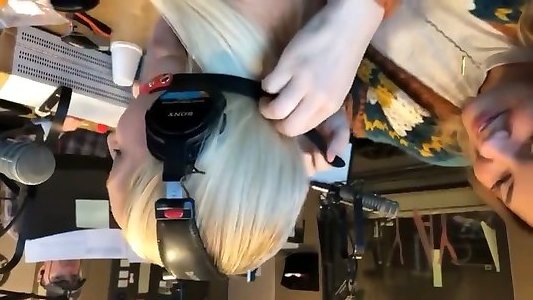 à la putain de salle de karaoké.elle chante material girl en chantant en levrette avec une allumeuse vibrante rotative