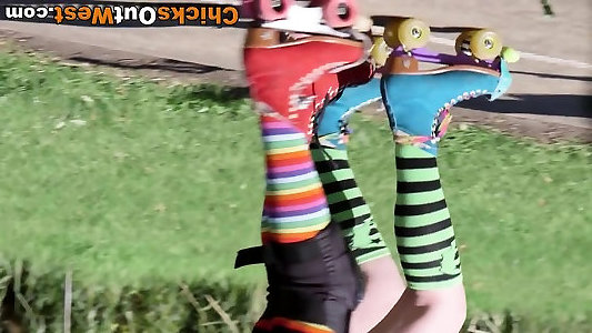 une blanche sans défaut en patins à roulettes se fait botter le cul