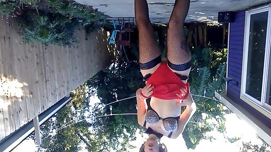 la brune à queue de cochon cleo patine entièrement nue autour de la piscine! 5 minutes