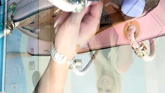 une méga-salope blonde avec des cupcakes innés reçoit un coup de foutre sur ses pieds