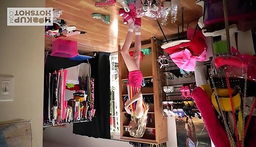 irina, la poupée blondinette rouge et chaude, met en valeur son chèvrefeuille et ses petits seins