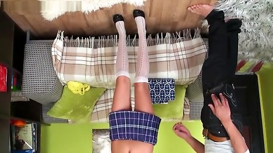 lusty aux cheveux noirs obtient sa chatte serrée coincée dans le salon