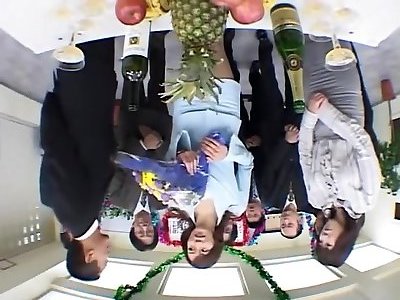 lépouse japonaise svelte se gargarise et manie une lance dure en pov