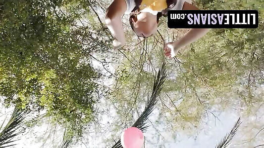 une adolescent femme asiatique essaie de sucer un gode pour la première fois