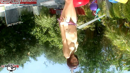 adolescente aux cheveux noirs de 18 ans avec de petits seins baisée à la piscine