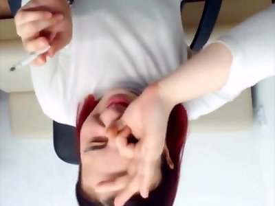 camgirl super sexy aux cheveux noirs qui fume, tire et fume travail oral