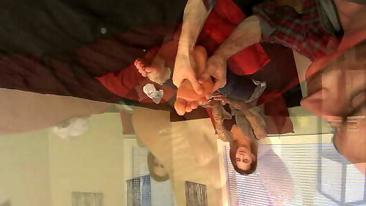 un ami regarde un footjob inversé sur le canapé pov1