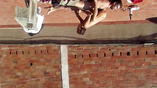 couple inexpérimenté pénétrant sur la terrasse, rapports sexuels à lextérieur