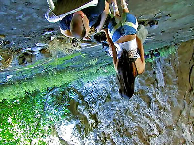 une jolie cascadeuse espagnole suce la bite et se fait défoncer la chatte au bord de la piscine