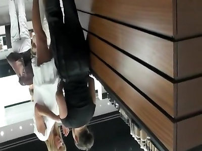nuageux traque la cage descalier alors que nous regardons sa jupe