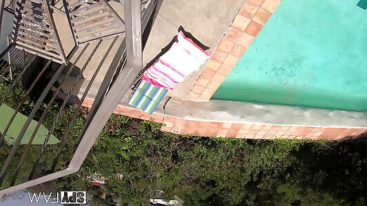 le beau-frère pervers de spyfam traque la belle-soeur pendant le bain de soleil