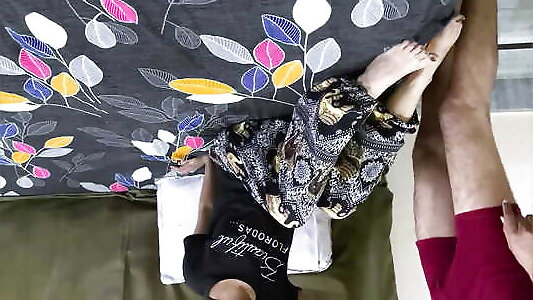 la demi-soeur indienne gémit de plaisir alors que ses seins étaient pressés et que la chatte était durement baisée par son demi-frère