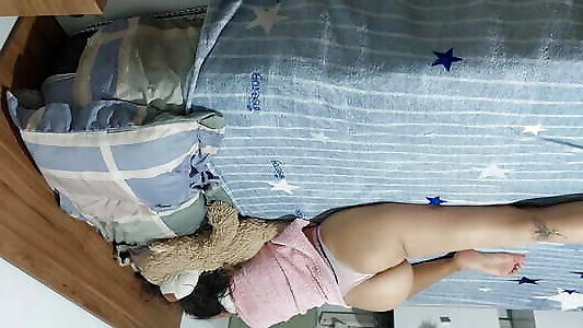 partageant le lit avec sa demi-soeur, je me branle sur son gros cul mais elle ma attrapé et je la baise par derrière