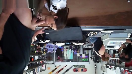 lhôtesse de lair se fait bouffer par un prêteur sur gages, alors elle se penche et baise, excitée et déchaînée
