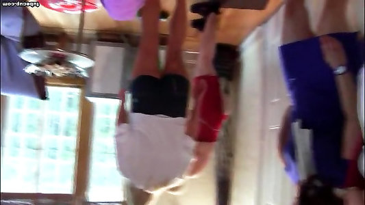 des miels fantastiques dans un joli short se font une orgie de groupe folle