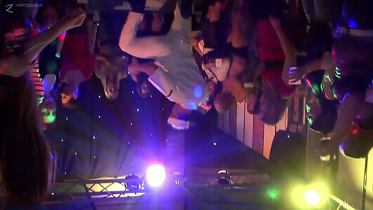 un clown insatiable se déshabille dans un pub de fille-sur-fille!