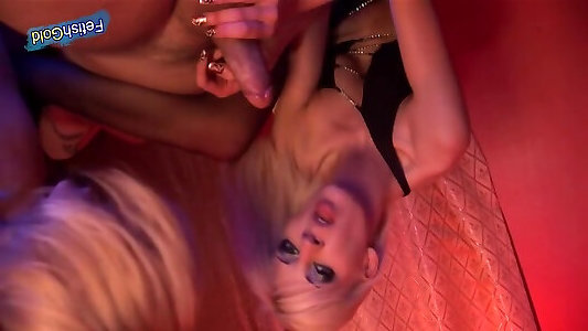 des filles merveilleuses sucent des coqs de strip-teaseuse