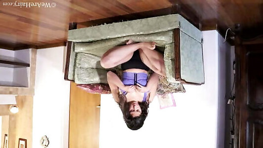 super mignonne poilue sally se déshabille et se branle sur son canapé