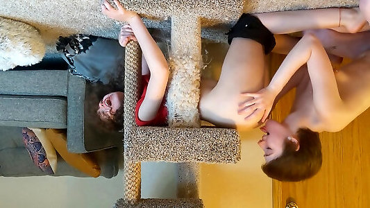 la nièce kinky step est coincée sous le canapé et fait pokes grand-père