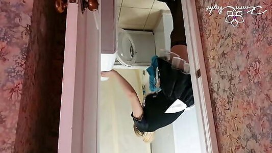 méchante femme de ménage coincée dans la machine à laver et ma plombé. je jouis sur son visage