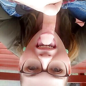 bbw blonde ringard à lunettes pipe deepthroat à genoux en public