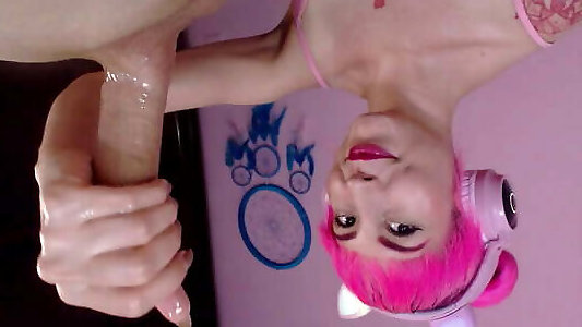 une nana aux cheveux roses se masturbe et suce un long cigare rose