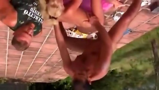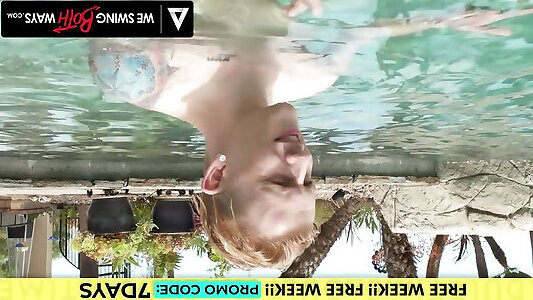 nous nous balançons dans les deux sens - la magnifique victoria sunshine initie un trio bisexuel au bord de la piscine