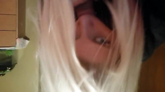 la blonde super torride en fauteuil donne la tête et boit du jism